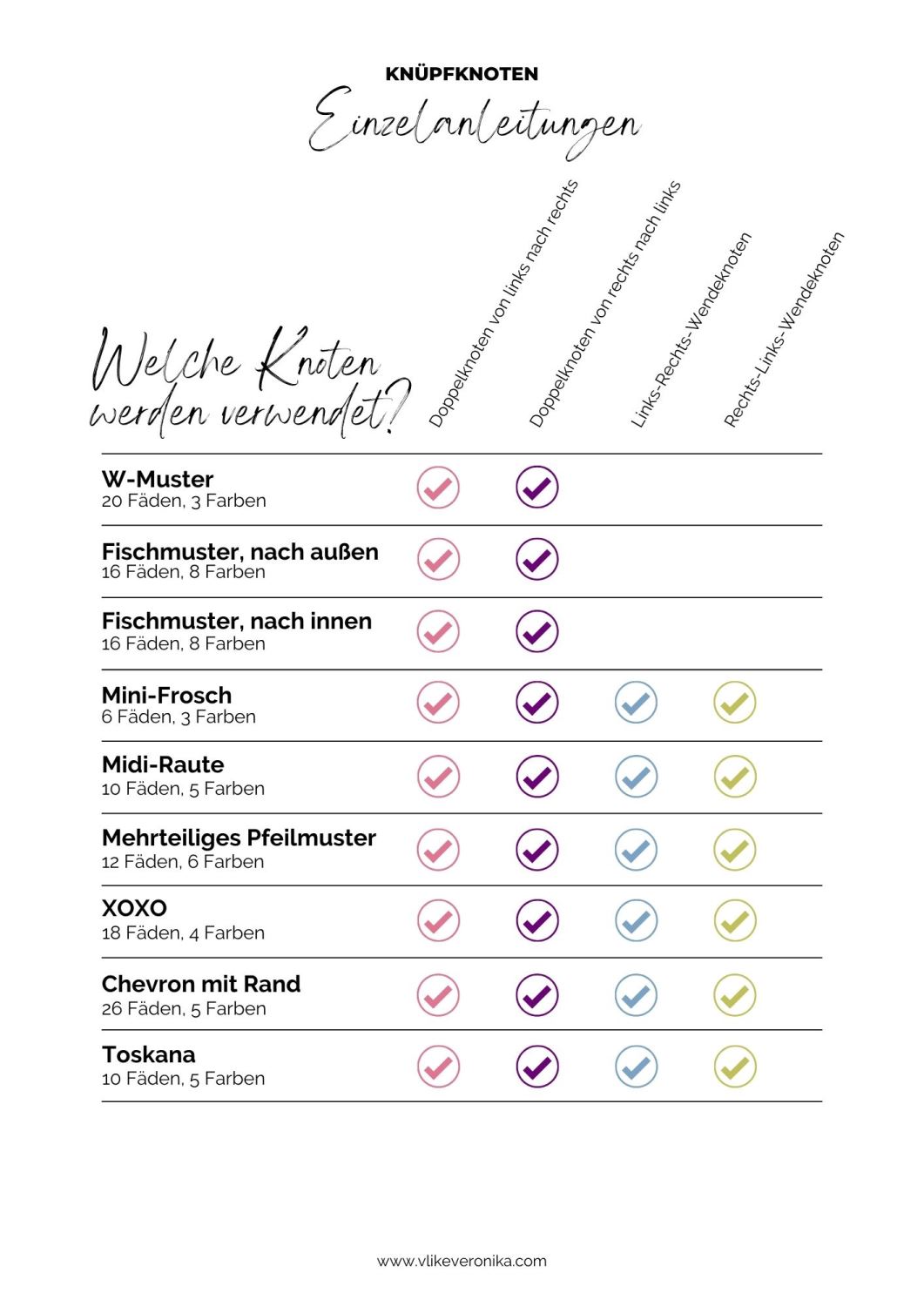 Nur vier Knüpfknoten sind für all diese Muster notwendig