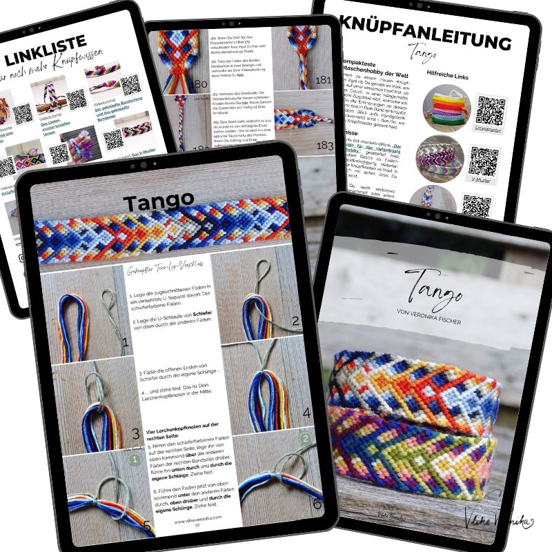 Du solltest vorher die vier Knüpfknoten beherrschen. - detaillierte Fotoanleitung mit 183 Bildern für das Muster Tango
