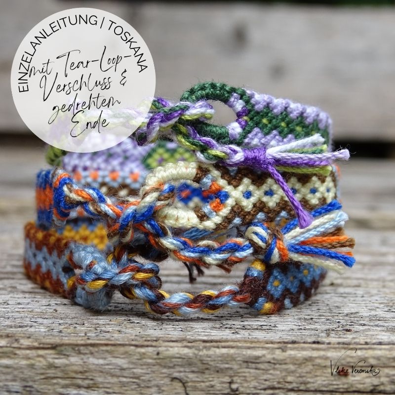 Hier findest du die detaillierte Foto- und Text-Anleitung samt unterstützenden Richtungspfeilen für das Muster Toskana mit zehn Fäden.